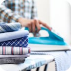 Engomar: Oferecemos os melhores serviços de engomadoria para deixar suas roupas bem passadas e dobradas, prontinhas para colocar na gaveta.